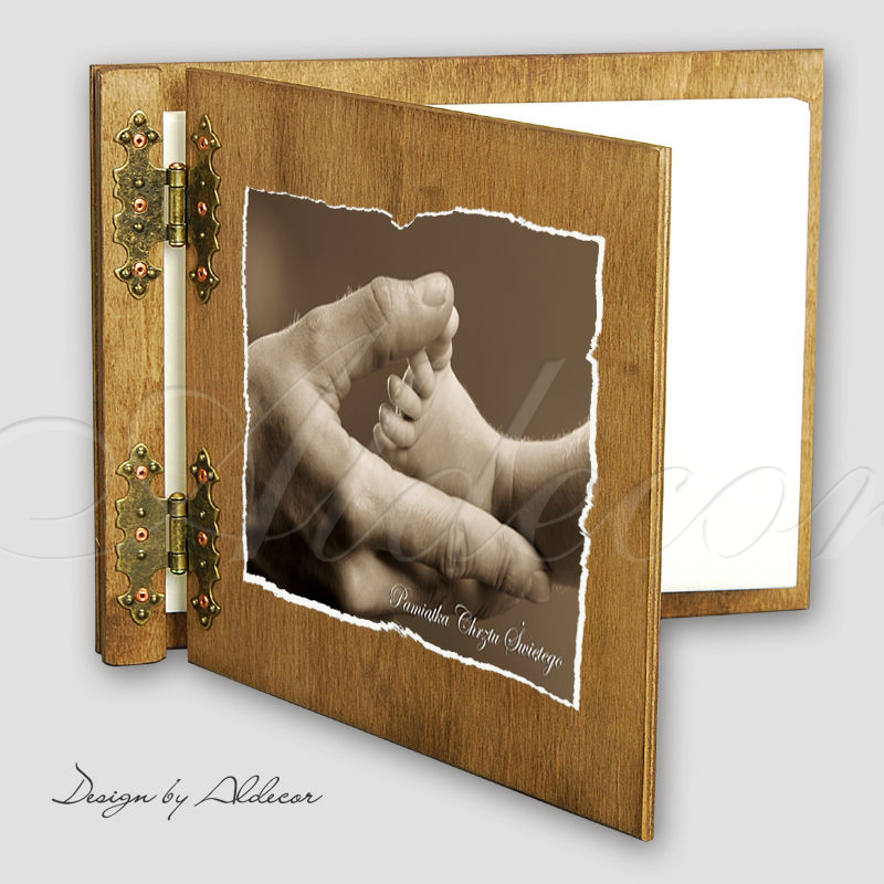 Album posiada drewnianą oprawę oraz stylowe kute zawiasy. Wyróżnia się niepowtarzalnym wzornictwem, album wybarwiany za pomocą naturalnych wosków barwiących - kolor dąb rustical. Album cechuje się wysoką jakością wykonania oraz niepowtarzalnym zapachem jaki daje wosk.